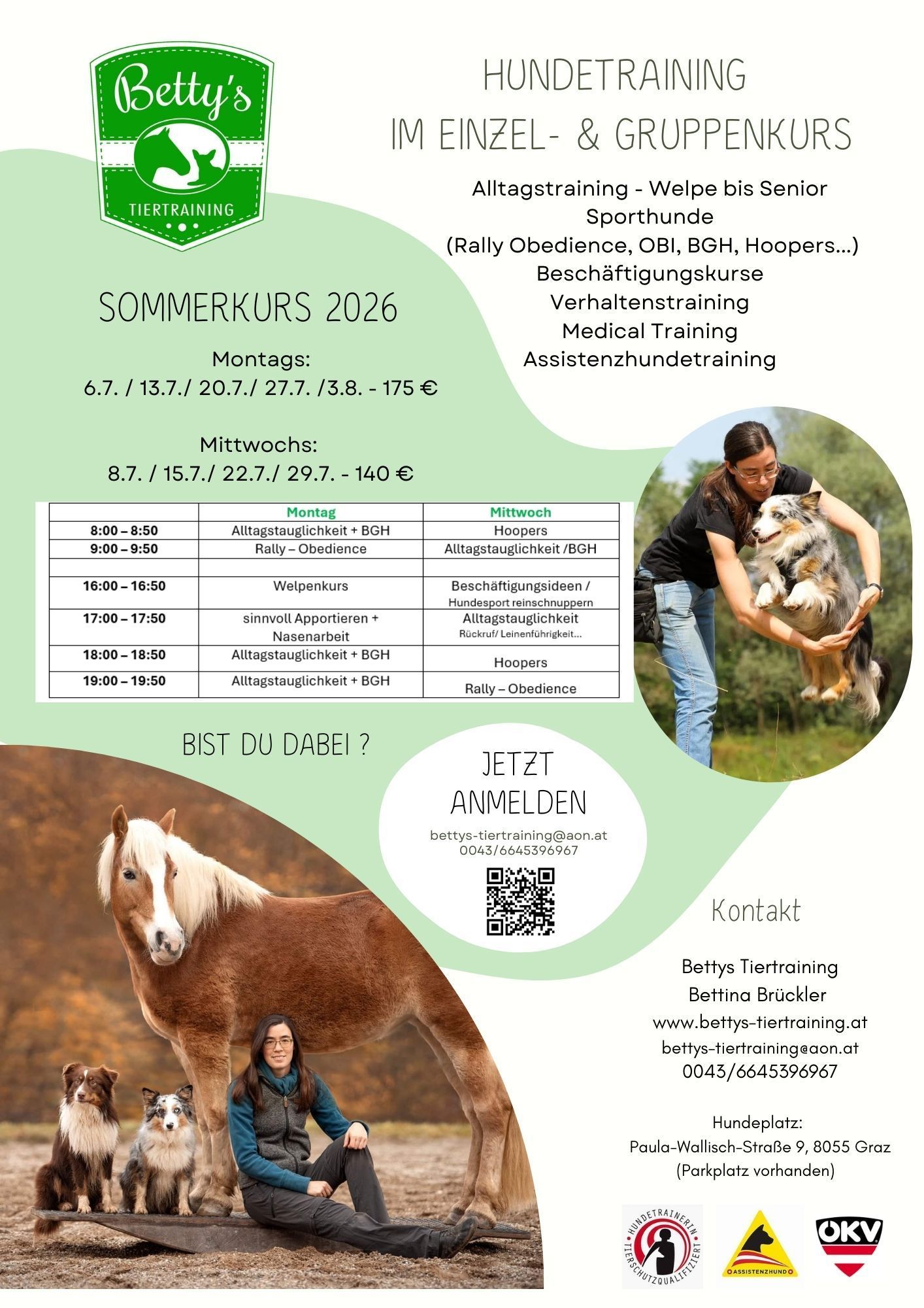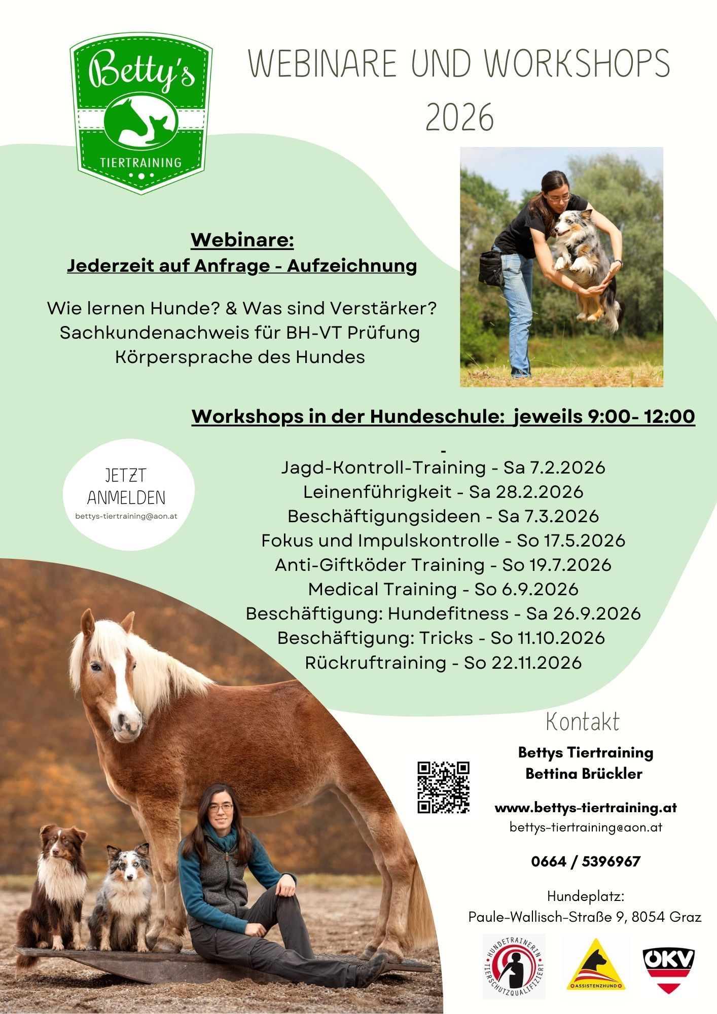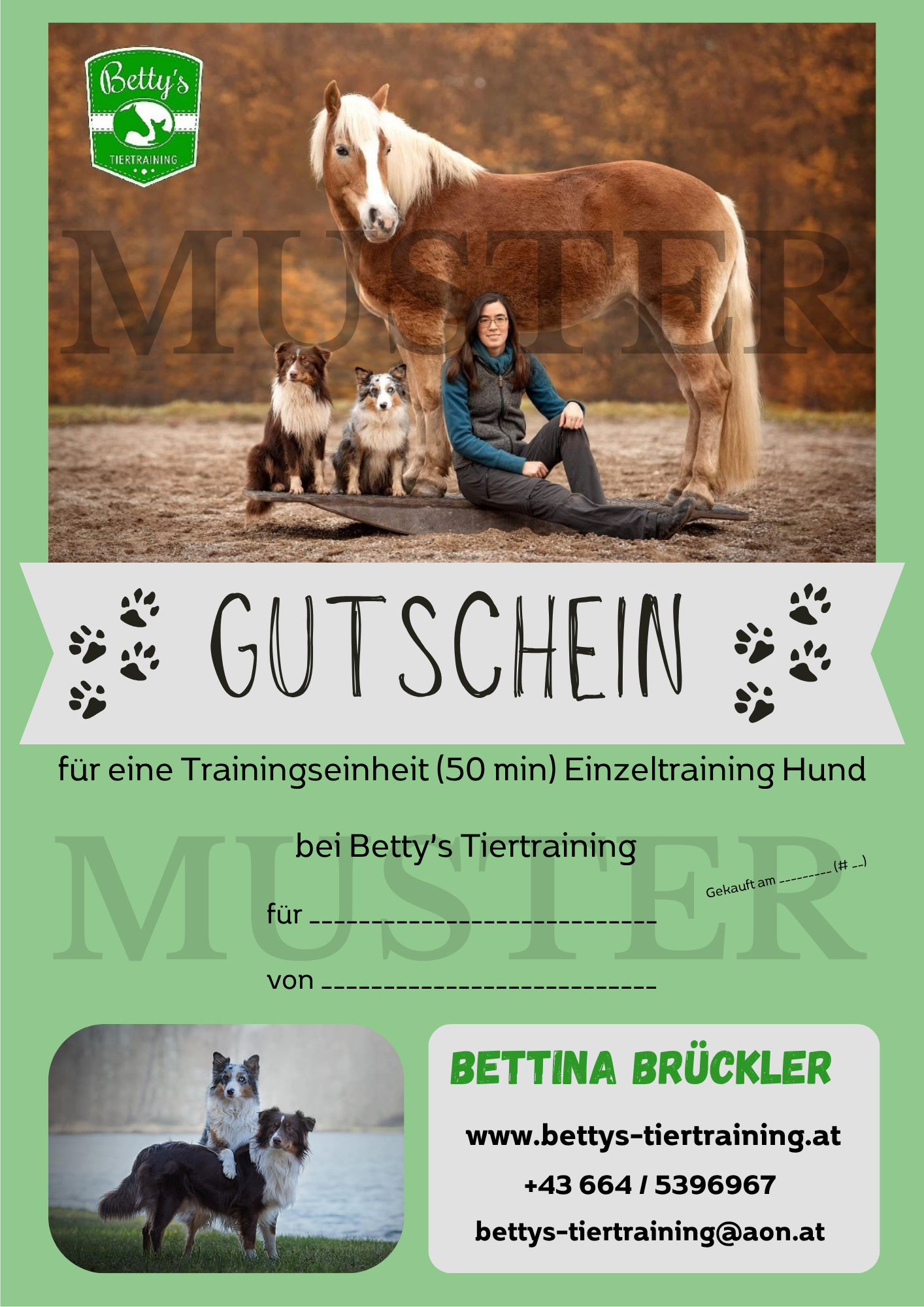 Buchbar per Mail: bettys-tiertraining@aon.at