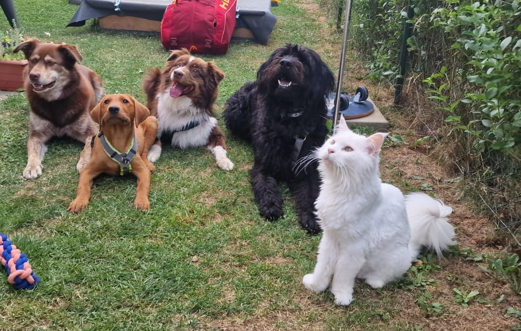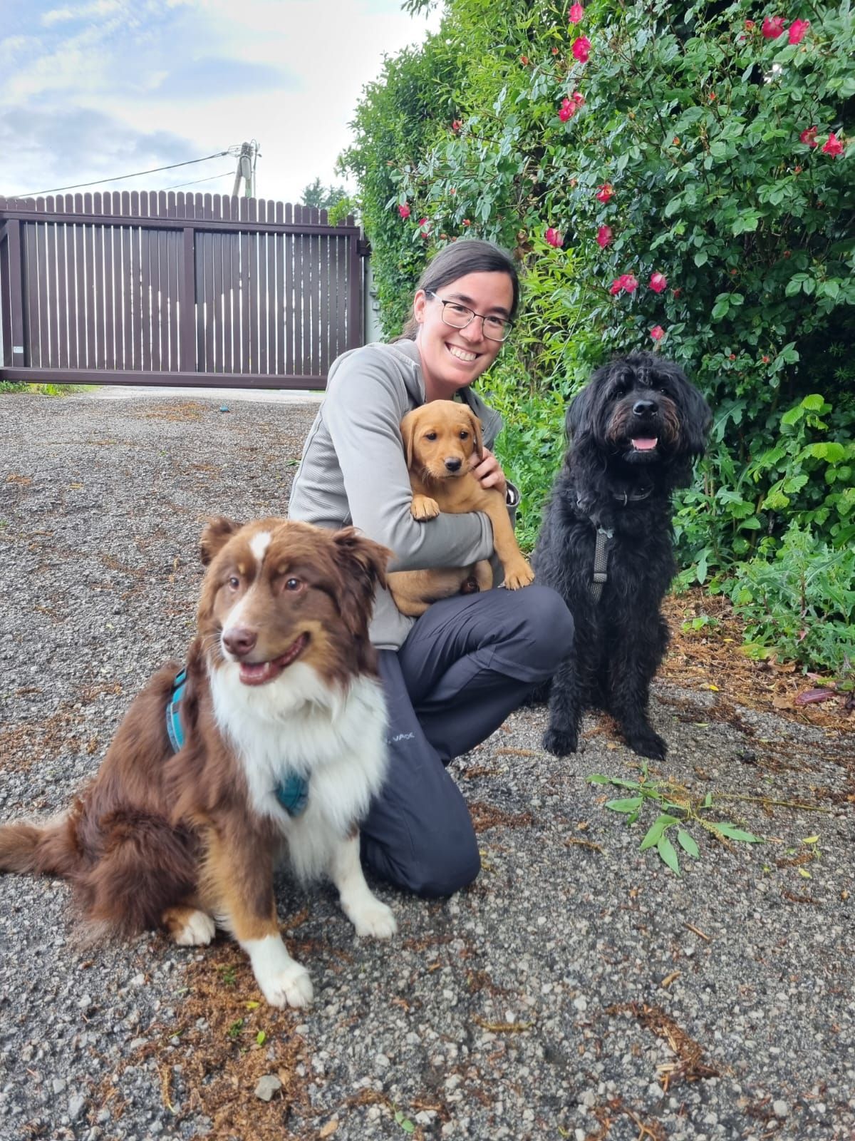Hailey macht bei wie alle anderen Assistenzhunde auch quasi jeden Urlaub mit und lebt wie Sunny auch zeitweise bei meiner Kollegin in Deutschland. Wir teilen uns die Aufgabe der Sozialisation, sodass die Hunde es auch gewohnt sind bei verschiedenen Menschen zu sein, um die spätere Abgabe einfacher zu machen aber sie so natürlich auch zwei unterschiedliche Tagesabläufe und Umgebungen kennenlernen. So lebt Christin auf einem Hof mit Katzen, einem Border Collie und ihrem Mann - sie macht viele Ausflüge in Großstädte wie Hamburg oder Hannover, ist aber auch viel im Wald unterwegs. Wobei ich in einer Wohnung in der nähe der kleinen Stadt Graz mit meinen anderen Hunden lebe. Hier sind die Hunde viel mit beim Training, im Stall bei meinem Pferd und natürlich auch auf Ausflügen und Seminaren.