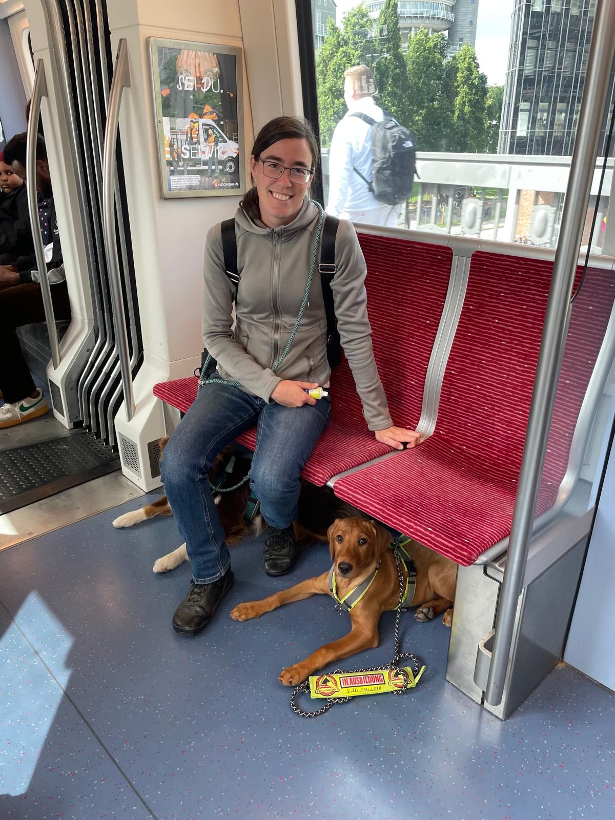 Teilweise treffen wir uns mit ihrem Bruder Harley der auch Assistenzhund werden soll zum trainieren - so waren wir am Bahnhof oder haben die Hunde spielerisch an Führgeschirre gewöhnt.